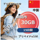 中国 30GB 15日間