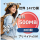 世界 147カ国 500MB 毎日 20日間