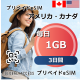アメリカ・カナダ 1GB 毎日 3日間
