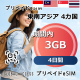 東南アジア 4カ国 eSIM 3GB 4日間